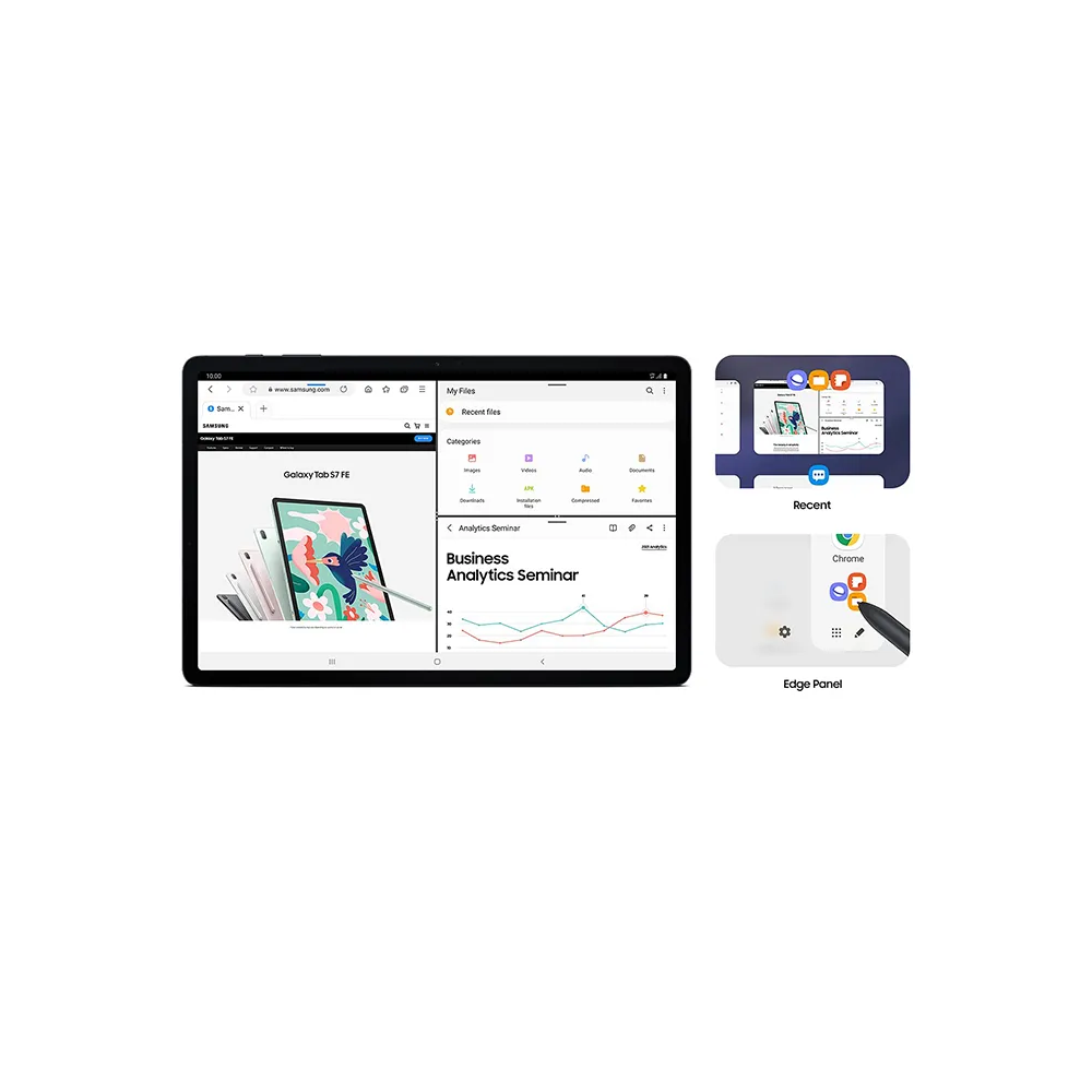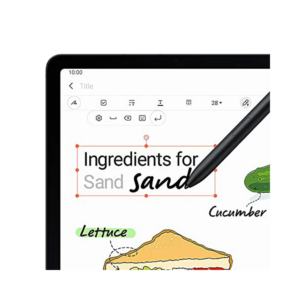 The Samsung Galaxy Tab S9 FE is a tablet that has a 10.9-in LED screen and is water and dust resistant. It has an IP68 rating and an 18-hour battery life.
